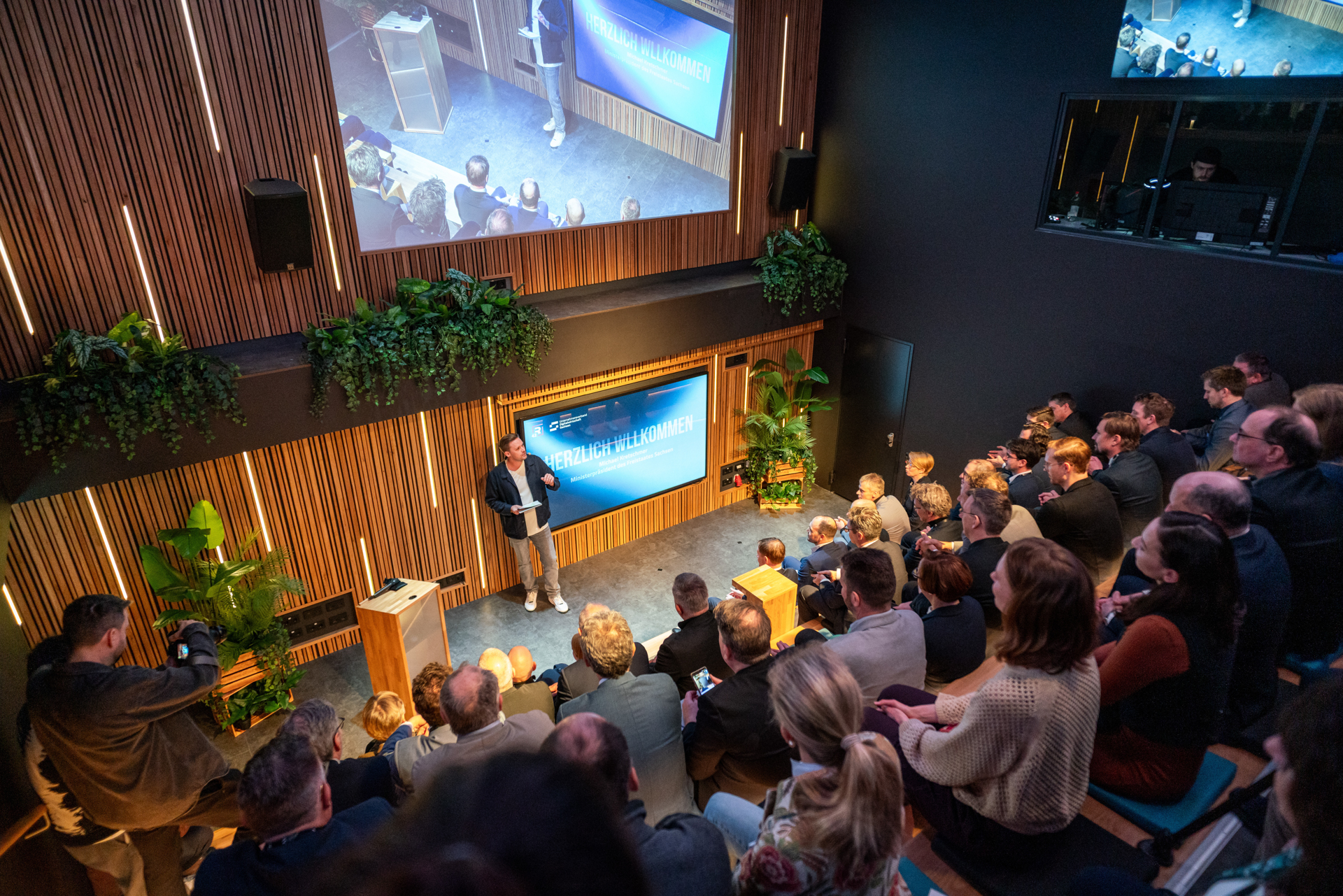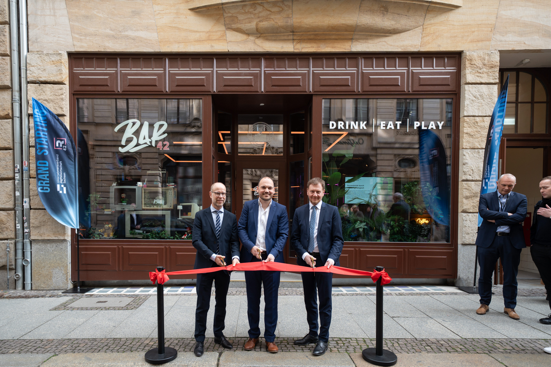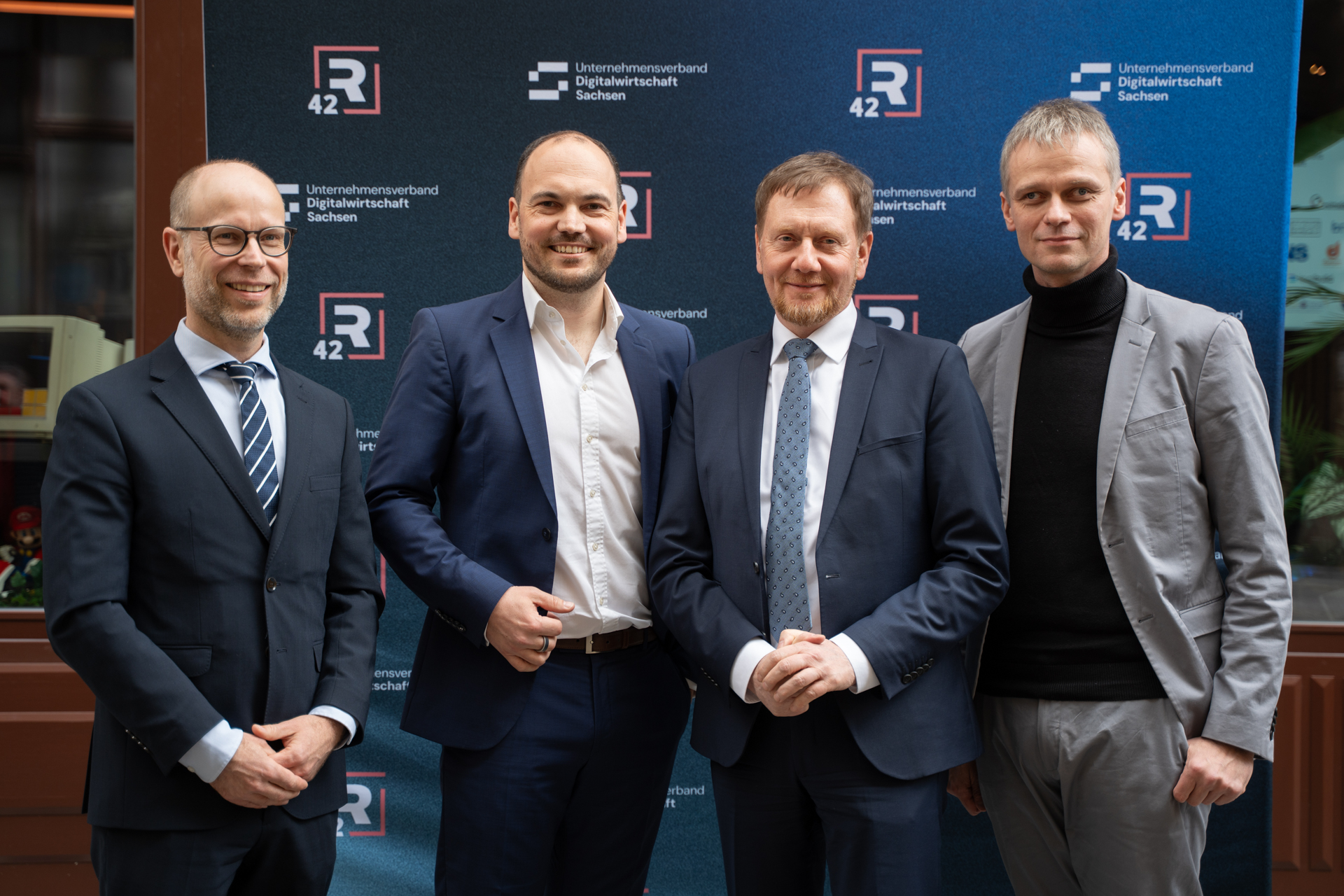 Der Ministerpräsident des Freistaats Sachsen Michael Kretschmer leitete die Eröffnungszeremonie mit einer Standortbestimmung der sächsischen Digitalwirtschaft ein. Außerdem sprachen Leipzigs Bürgermeister und Beigeordneter für Wirtschaft, Arbeit und Digitales Clemens Schülke und Christopher Siebenhüner, Initiator des R42 und Geschäftsführer der Gecko Two GmbH vor über 100 Gästen aus Politik und Wirtschaft über die Strahlwirkung des R42 Games Hub.
